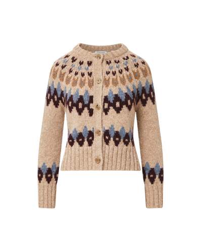 Veronica Beard Christina Fairisle Cardigan - Oatmeal Melange Multi
