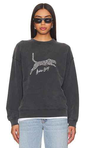 Anine Bing Washed Black Spencer Sweatshirt-Spotted Leopard