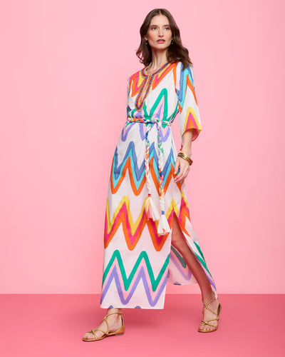 Figue Bianca Kaftan - Chevron Multi White