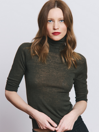 Autumn Cashmere-Fitted sheer eblow sleeve turtleneck-Cypress