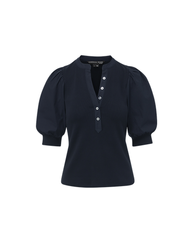 Veronica Beard Coralee Puff-Sleeve Top - Navy