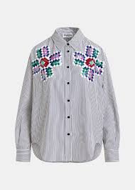 Essentiel Antwerp Sequin-Embroidered Pinstripe Shirt - Black/Burgundy
