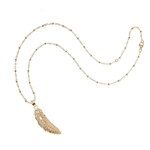 Jane Win LUCKY Feather Pendant / 16-18" Delicate Satellite Chain