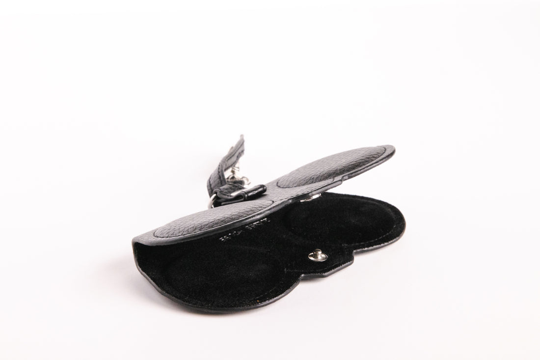 This hand-crafted eyewear case, the GLASS HOUSE CASE in Graphite, boasts genuine leather and a timeless design. With expert craftsmanship, this case ensures secure and stylish protection for your eyewear. the glass house: a must-have accessory for any fashionable eyewear enthusiast.