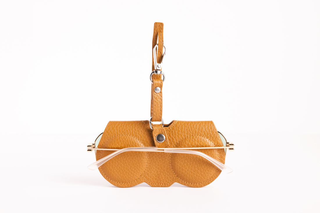 This hand-crafted eyewear case, the GLASS HOUSE CASE in Sand, boasts genuine leather and a timeless design. With expert craftsmanship, this case ensures secure and stylish protection for your sunglasses. the glass house: a must-have accessory for any fashionable eyewear enthusiast.