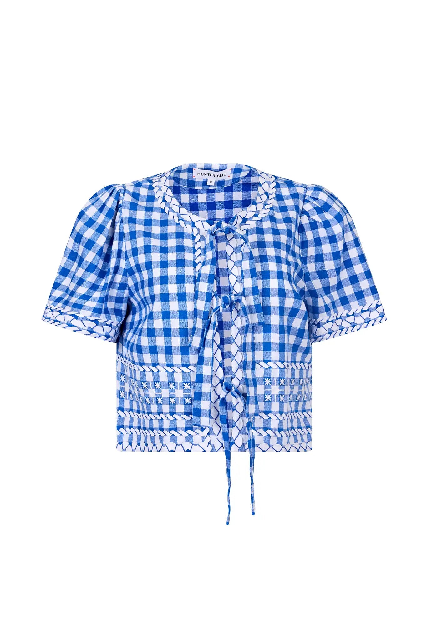 The Haven Top is a charming take on classic gingham, designed with playful details and vintage-inspired appeal. Featuring a crew neckline, short sleeves, and a cropped tie-front silhouette, it’s finished with whimsical ric rac trim for an extra touch of personality. The boxy fit and yarn-dyed fabric make it a feel-good favorite for everyday wear.