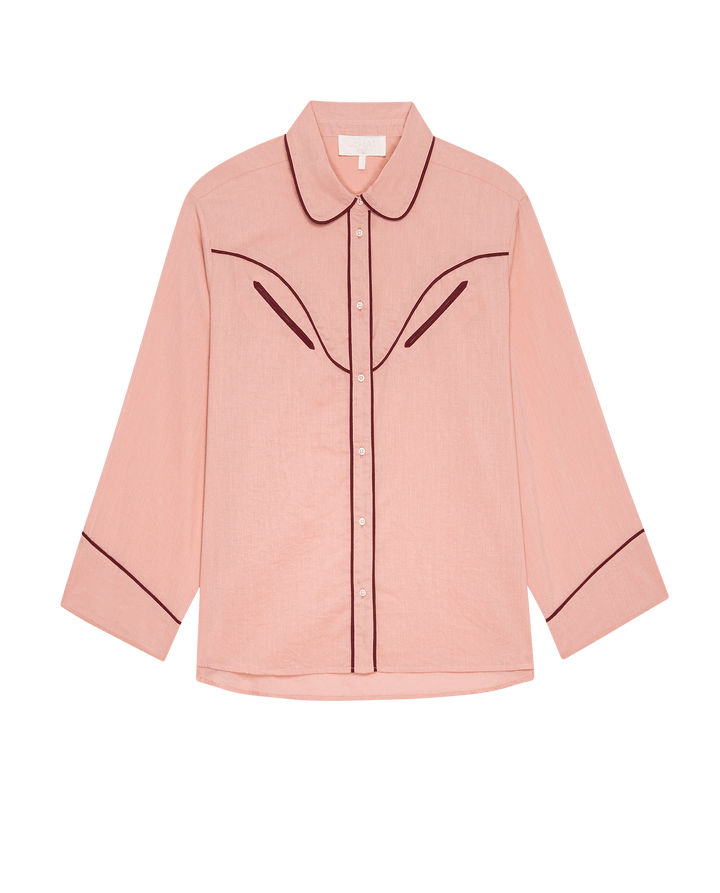 The Western Pajama Shirt is an update to our favorite menswear-inspired pajama shirts. Comfortable and relaxed in shape, it features a collared neckline, button-front closure, and Western-inspired yoke with welt pocket detailing. Made of soft 100% cotton and trimmed with contrast piping, it pairs perfectly back to The Western Easy Sleep Pant or The Square Pajama Short for a coordinated set.