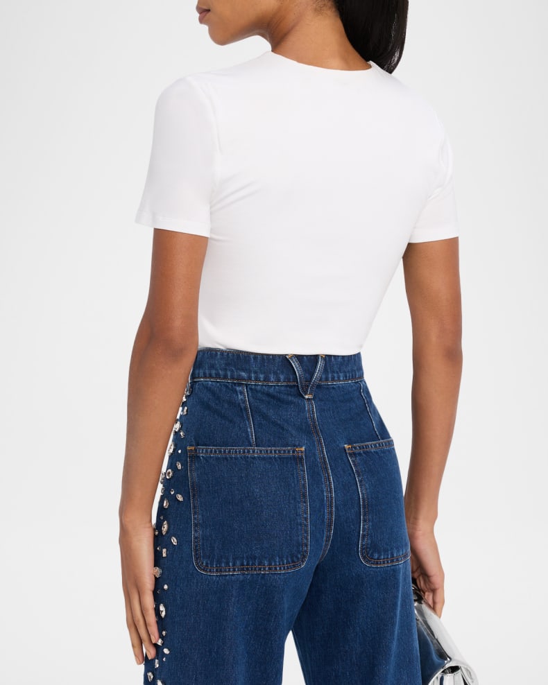 The ultimate foundation for any wardrobe, the "Benedict" tee by Veronica Beard is crafted from a premium stretch blend in a body-skimming silhouette